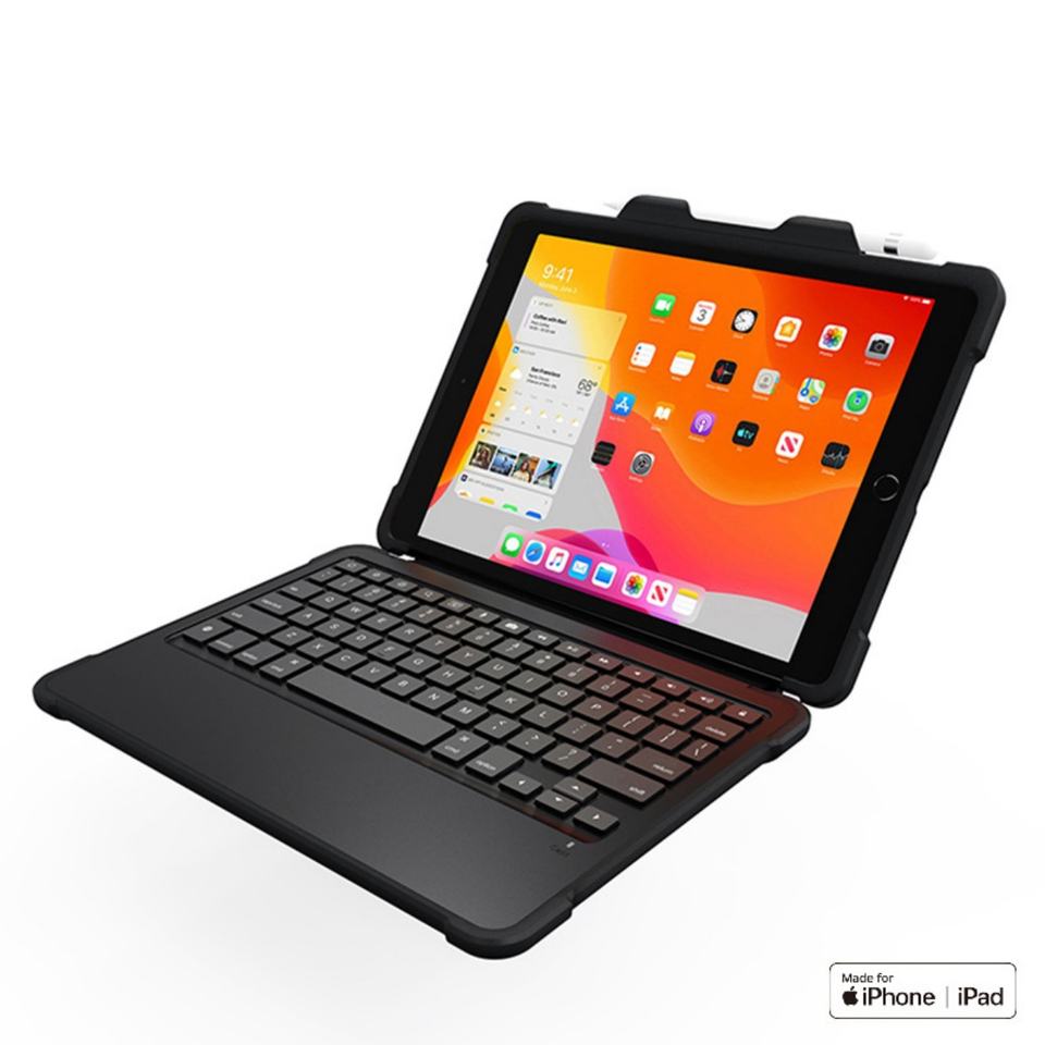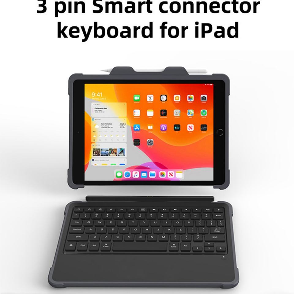 เคสคีย์บอร์ดแบบมีขาตั้ง 3 ขา พร้อมช่องใส่ปากกา ป้องกันอย่างดี รองรับการเชื่อมต่อแบบ Smart Connect และคีย์บอร์ดบลูทูธแบบ Smart 3 ขา รองรับ MFi