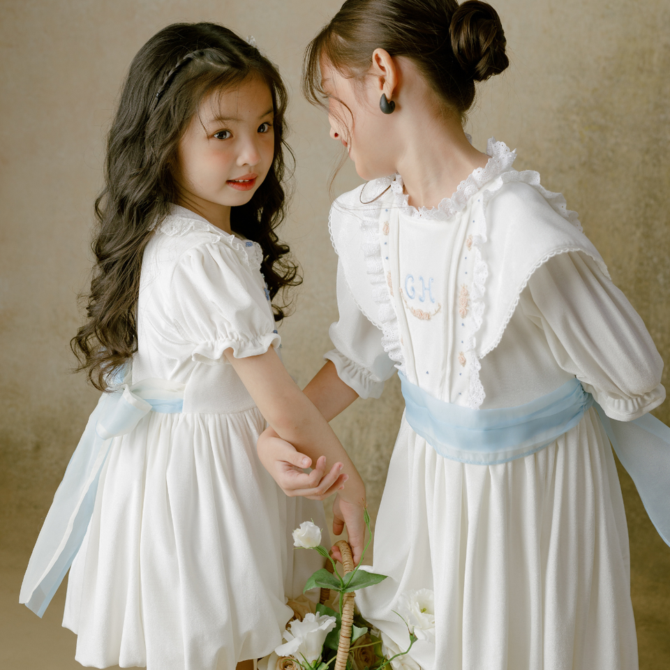 ชุดเดรสเด็กผู้หญิงตัวเล็กผ้ากำมะหยี่แขนยาวหลายสีทำมือแขนสั้น-Sarah