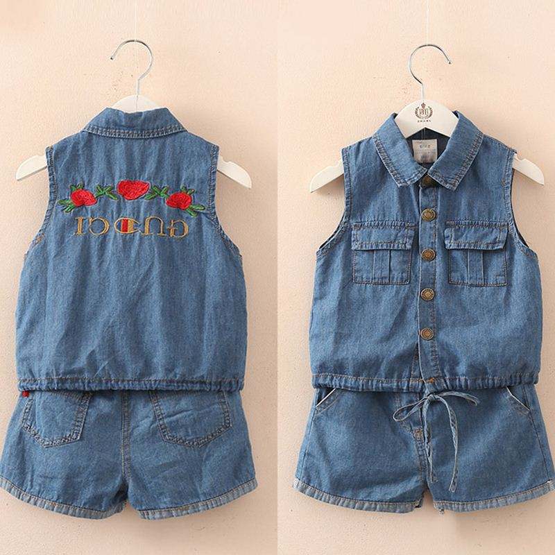 เสื้อกั๊กเด็ก ผ้าเดนิม และกางเกงยีนส์แบรนด์เนม ชุดจั๊มสูทเด็ก พรีเมียมใหม่ จากผู้ผลิตในจีน