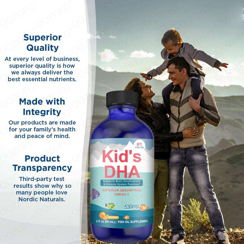 อาหารเสริมน้ำมันปลาเด็ก ดีเอชเอ โอเมก้า-3 530 มก. ช่วยเสริมพัฒนาการสมองและระบบภูมิคุ้มกัน รสส้ม ขนาด 60 มล. สำหรับเด็ก