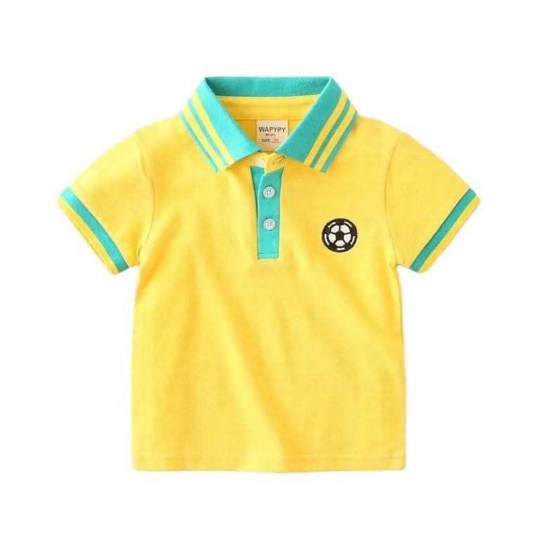 เสื้อโปโลผ้าฝ้าย100% พิมพ์โลโก้แบบเรียบสำหรับเด็ก