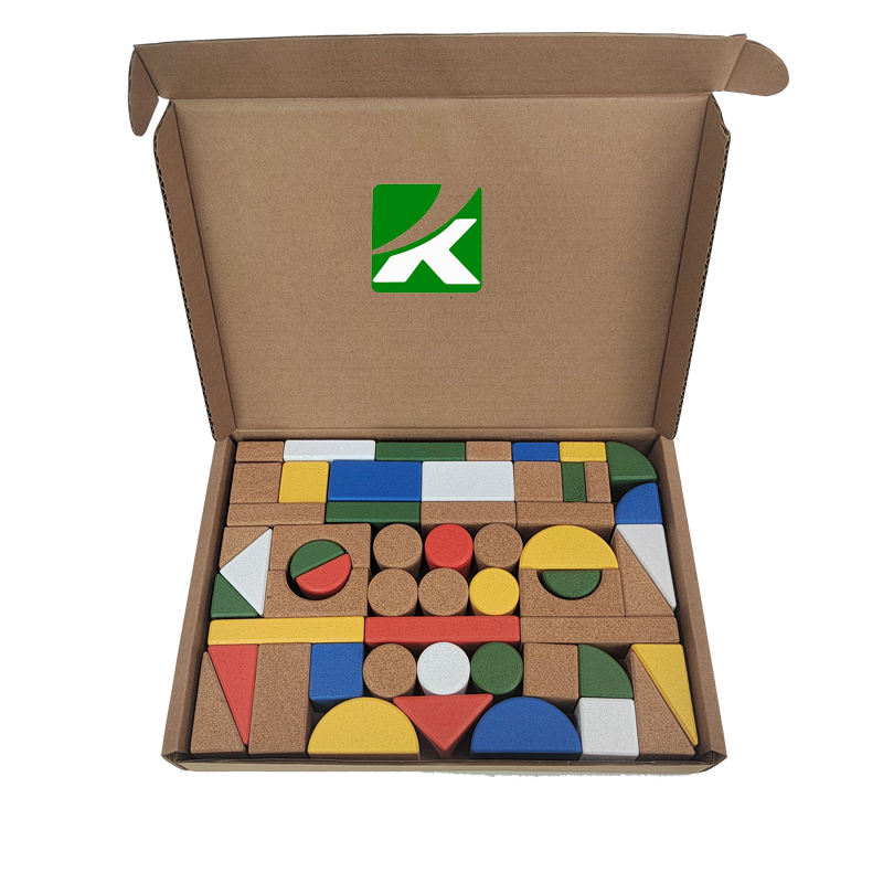 ชุดบล็อกตัวต่อไม้คอร์กคาร์บอนสีของเล่นไม้3D เพื่อการศึกษาสำหรับเด็ก55ชิ้น