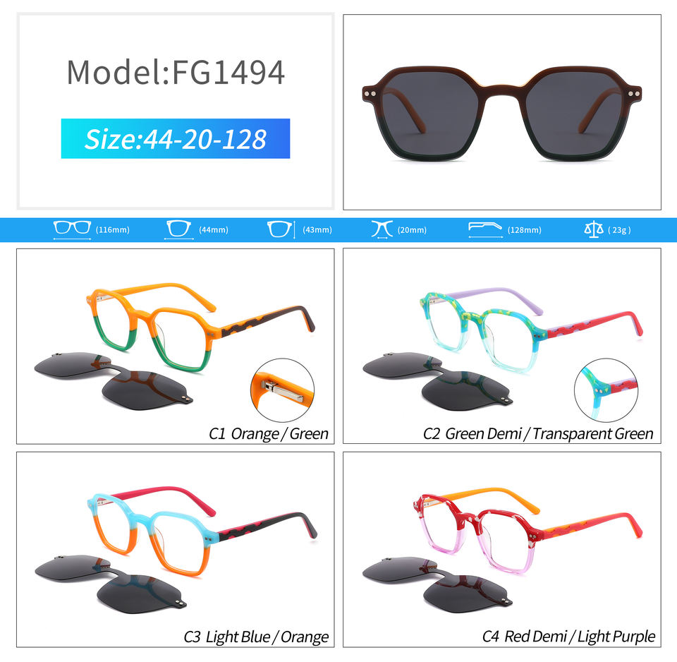 แว่นกันแดดสำหรับเด็กทำจากอะซิเตทพร้อมคลิปหนีบแม่เหล็กโพลาไรซ์โลโก้ตามสั่งแว่นตาแม่เหล็กสำหรับเด็ก