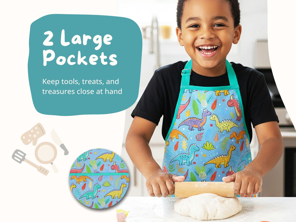 ผ้ากันเปื้อนเด็กพร้อมสายคล้องคอปรับได้และกระเป๋าด้านหน้าซักได้ผ้ากันเปื้อนเชฟตัวน้อยสำหรับการอบและงานฝีมือผ้าฝ้าย15x18