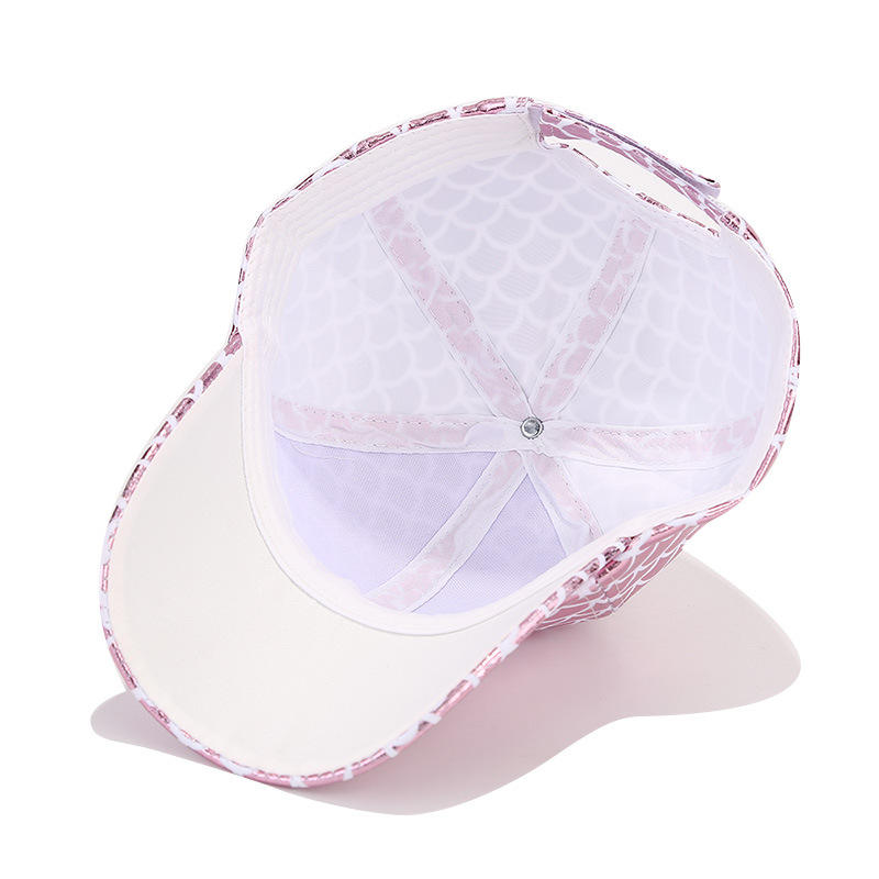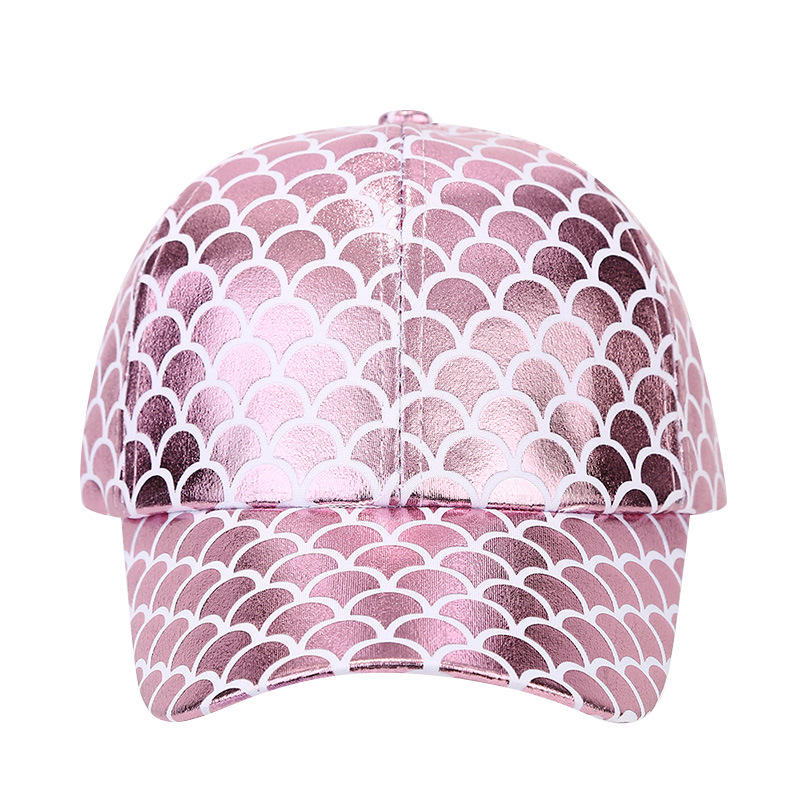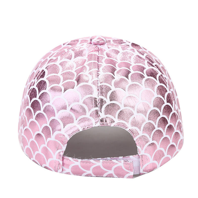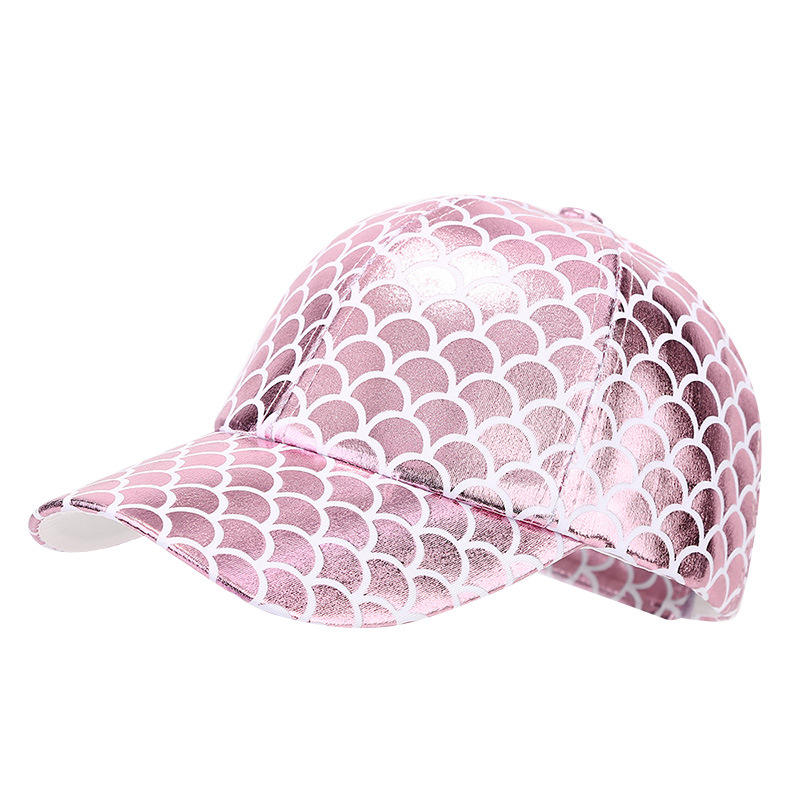 เด็กเบสบอลหมวกสิทธิบัตรหนังพิมพ์สีชมพูMermaid Scalesหมวกพ่อปรับแฟชั่นกีฬาสบายๆสําหรับสาวน้อยหมวก