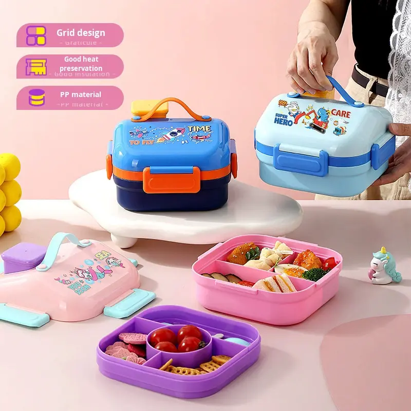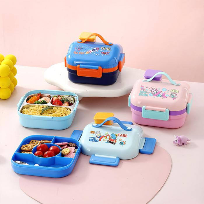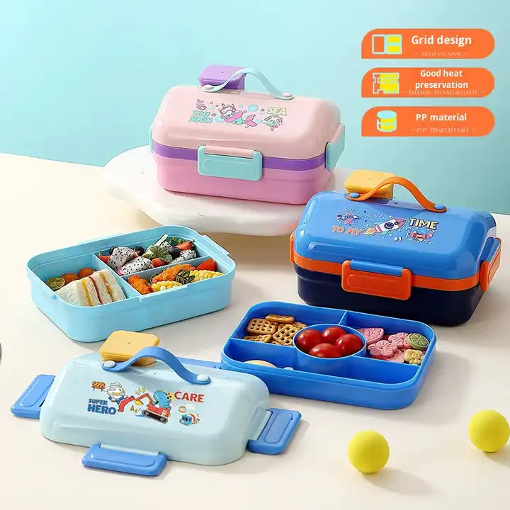 กล่องอาหารกลางวันเด็กแบบเบนโตะ ป้องกันการรั่วซึม 5 ช่อง วัสดุเกรดอาหาร ปลอดสาร BPA ใช้กับไมโครเวฟได้ พกพาสะดวก สำหรับเด็กไปโรงเรียนหรือปิกนิก