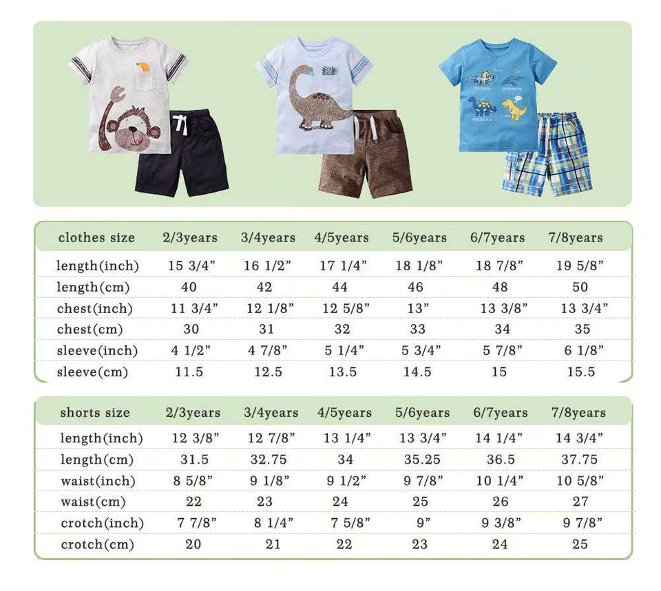 ชุดเสื้อผ้าเด็กผู้ชาย ชุดฤดูร้อนสำหรับเด็กเล็ก เสื้อแขนสั้นลายไดโนเสาร์ ชุดเสื้อยืดและกางเกงขาสั้น ชุดเซ็ต 2-7 ขวบ