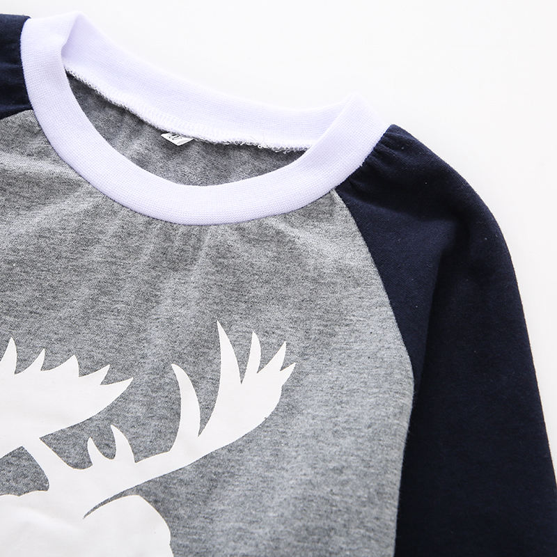 ชุดนอนเด็กผู้ชายแขนยาวลายกวางและกางเกงเลกกิ้งชุดเสื้อผ้าเด็ก