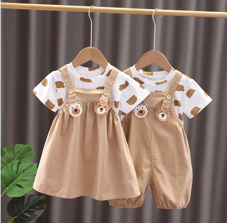 เด็กพี่น้องเสื้อผ้าเด็กทารกเด็กชาย/เด็กหญิงการ์ตูนเสื้อยืดกางเกงขาสั้น 2 ชิ้น/เซ็ตฤดูร้อนแฟชั่นชุดลำลอง 0-5 ปี
