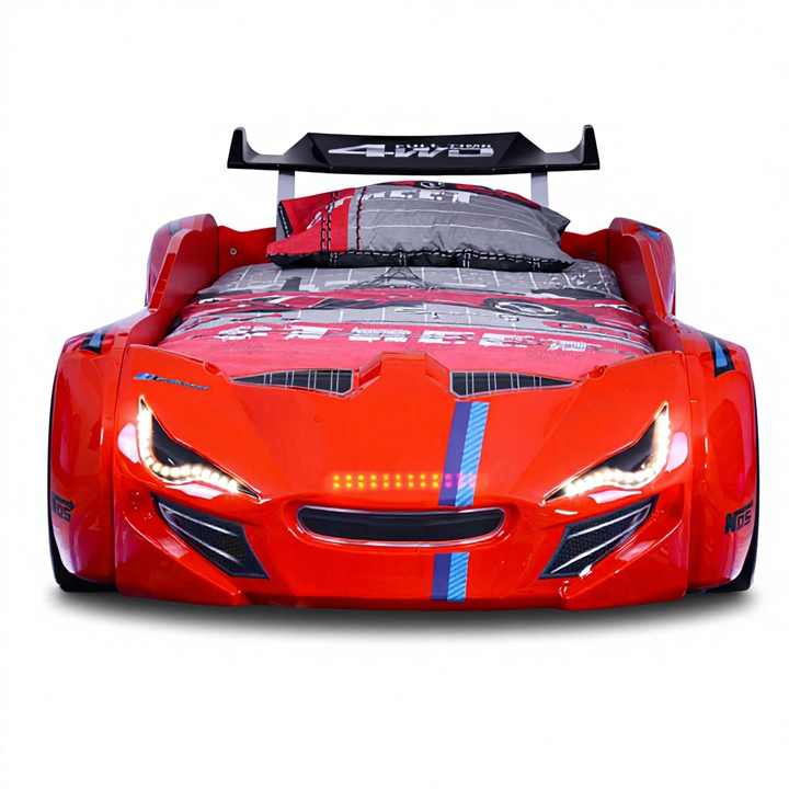 เตียงรถเด็ก MVN1 ผลิตจากพลาสติก ABS เป็นมิตรกับสิ่งแวดล้อม ดีไซน์ทันสมัย ไฟหน้าสีขาว ล้อเสริมพร้อมไฟ LED เสียง และรีโมทคอนโทรล ใช้ได้ทั้งในห้องนอนและโรงแรม