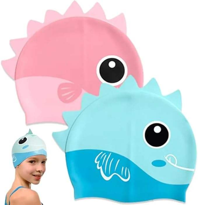 หมวกว่ายน้ำเด็กการ์ตูนคุณภาพสูง กันน้ำได้ดีเยี่ยม ตลก ยืดหยุ่นสูง ทำจากซิลิโคน ไม่รั่วซึม