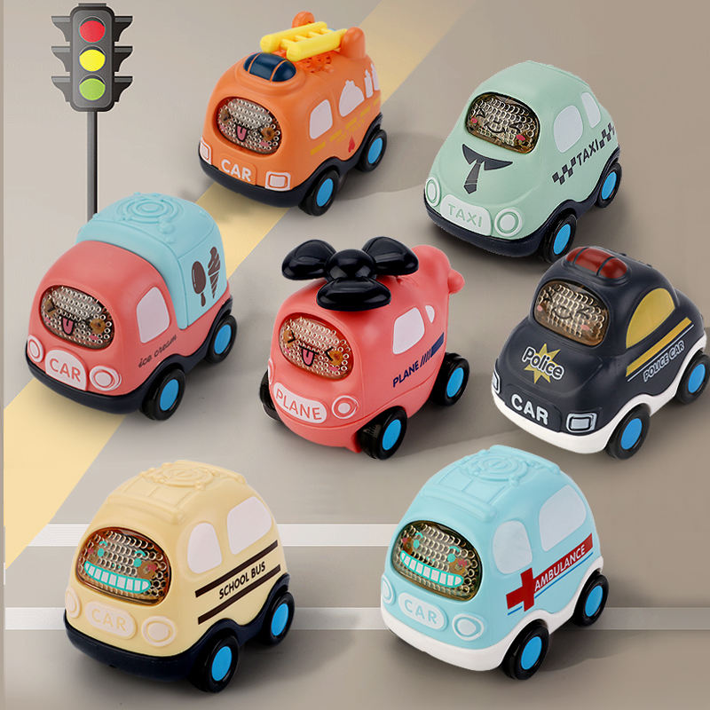 ชุดของเล่นรถการ์ตูนสำหรับเด็กเล็ก ของขวัญวันเกิดสำหรับเด็กแรกเกิด รถของเล่นแบบเฉื่อยสำหรับเด็กทารก 0-12 เดือน พร้อมแผ่นรองเล่นและถุงเก็บของ