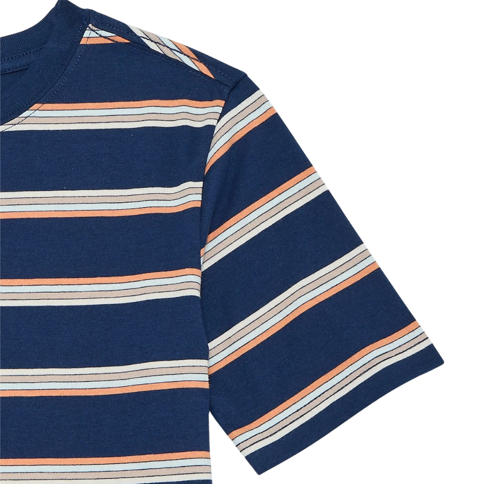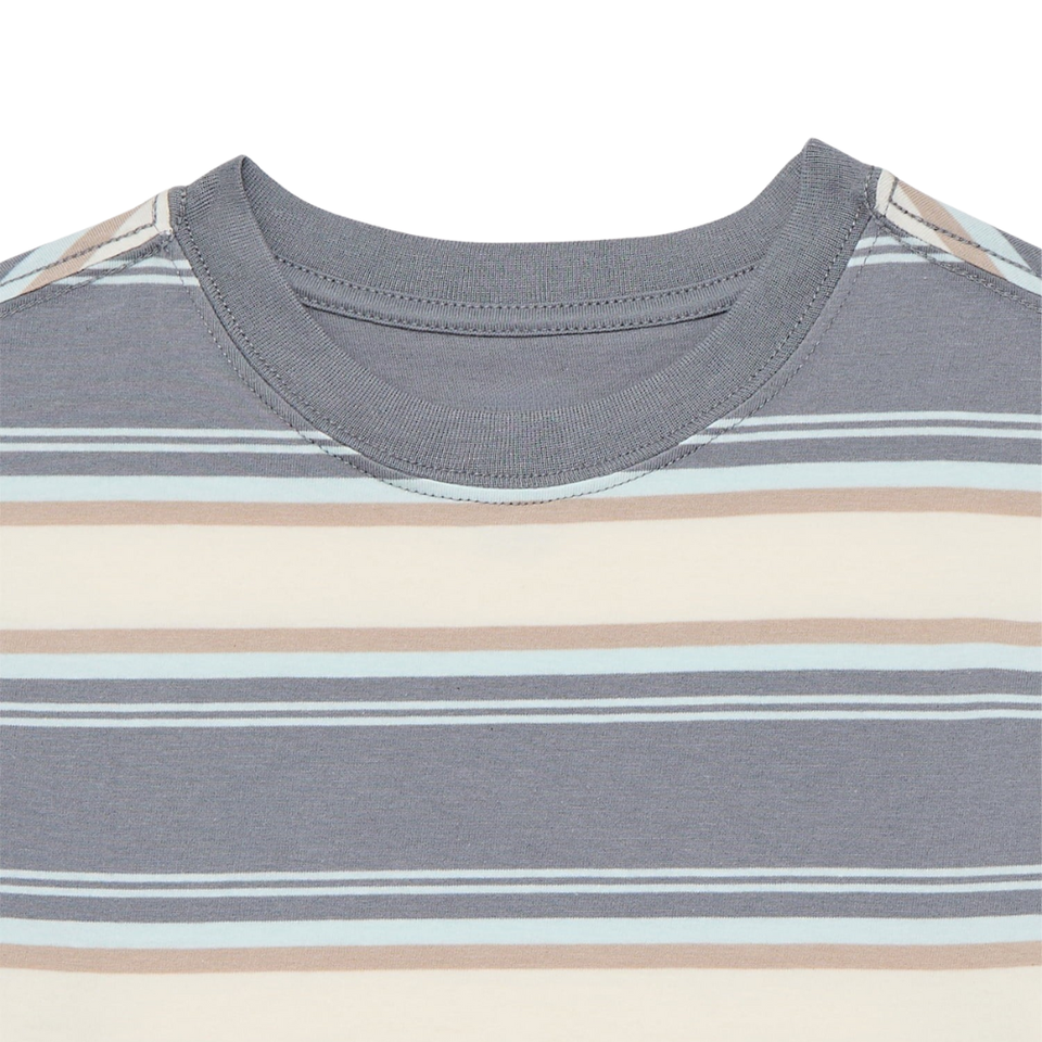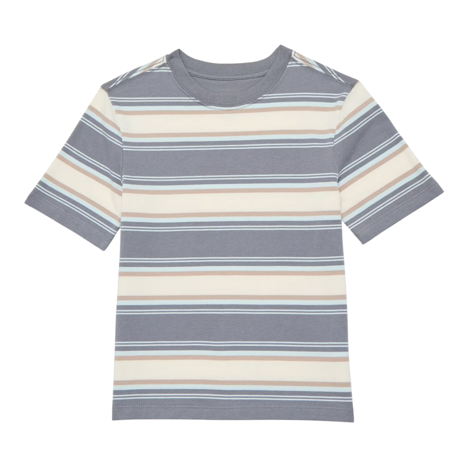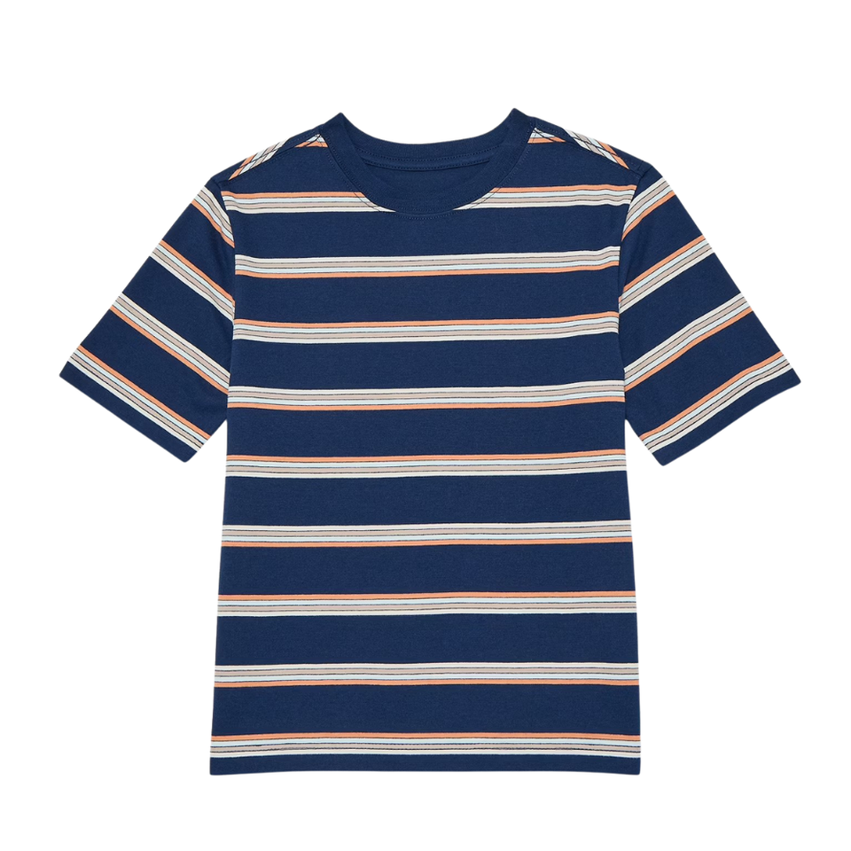 เสื้อยืดเด็กแขนสั้นคอกลมลายทาง ผ้าถัก 100% คอตตอนออร์แกนิค เป็นมิตรกับสิ่งแวดล้อม ระบายอากาศได้ดี ขายส่ง MOQ ต่ำ ทรงเข้ารูป