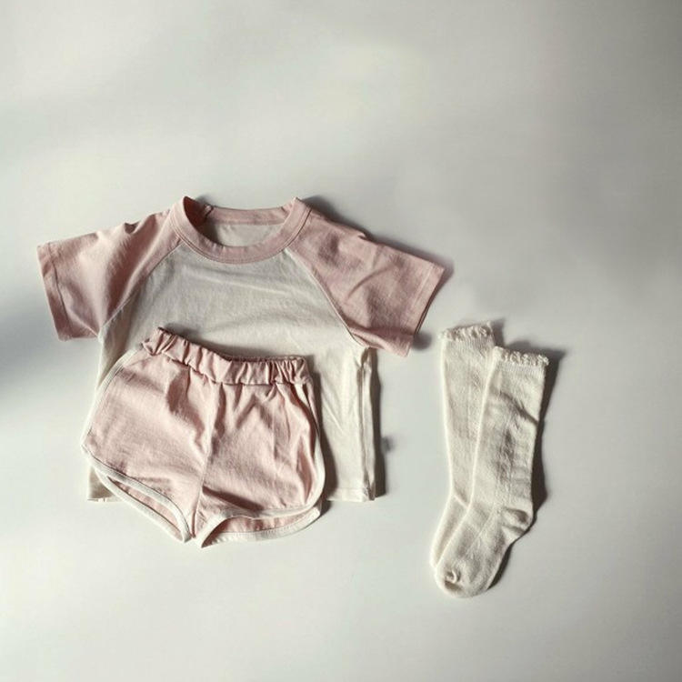 ชุดเสื้อผ้าเด็ก 2021 ฤดูร้อนฮิตสีแร็กแลนเสื้อยืดกางเกงขาสั้นผ้าฝ้ายชุดเด็กชายและเด็กหญิง