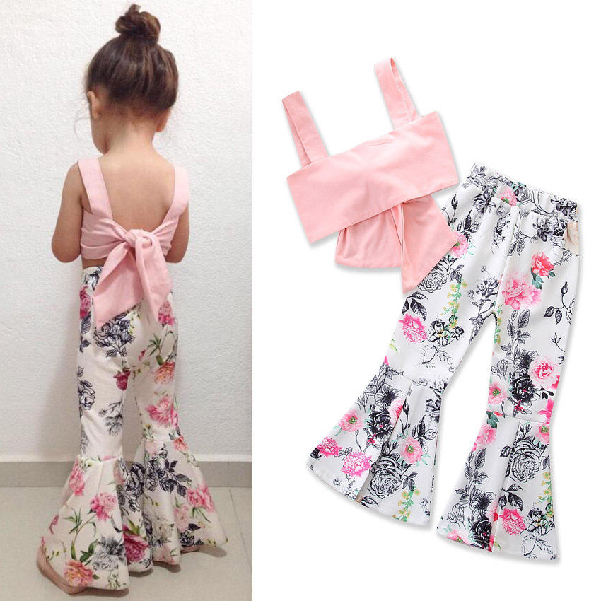 ชุดกางเกงขาบานบางสำหรับเด็กผู้หญิง พร้อมกางเกงเลกกิ้งลายดอกไม้สำหรับผู้หญิง