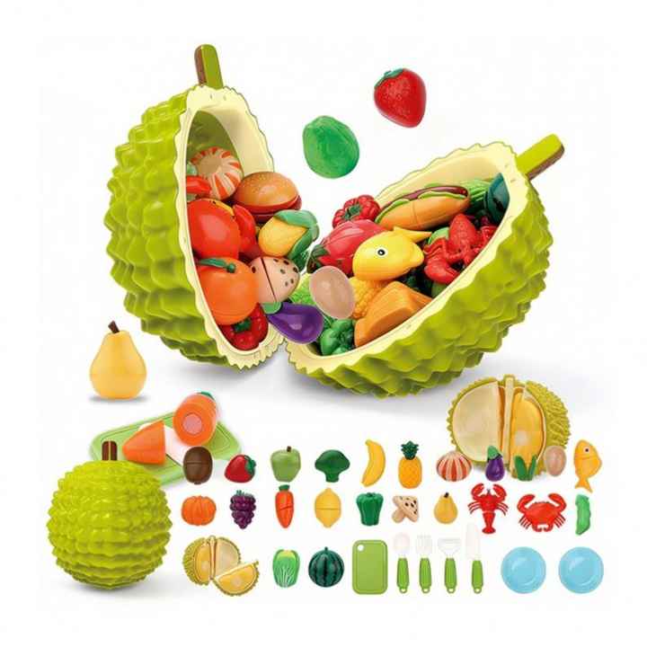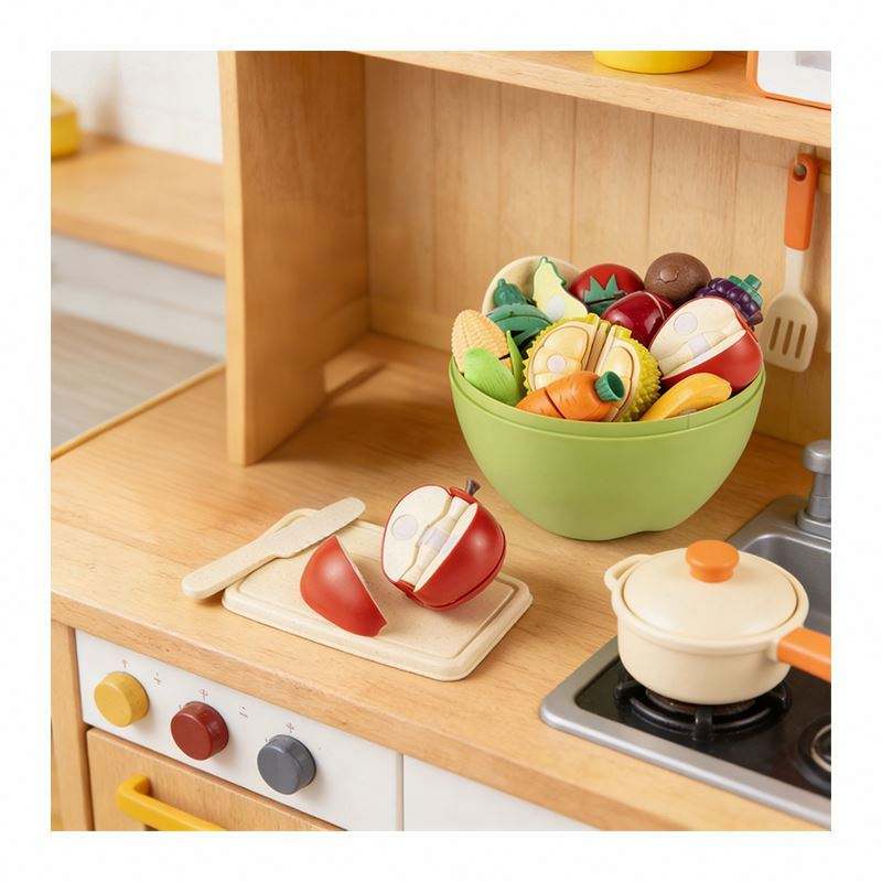 ชุดทำอาหารเด็ก ของเล่นครัว ชุดของเล่นทำอาหารเสมือนจริง หั่นผักผลไม้ ของเล่นเสริมพัฒนาการเด็กเล็ก ของเล่นบทบาทสมมติ พลาสติก