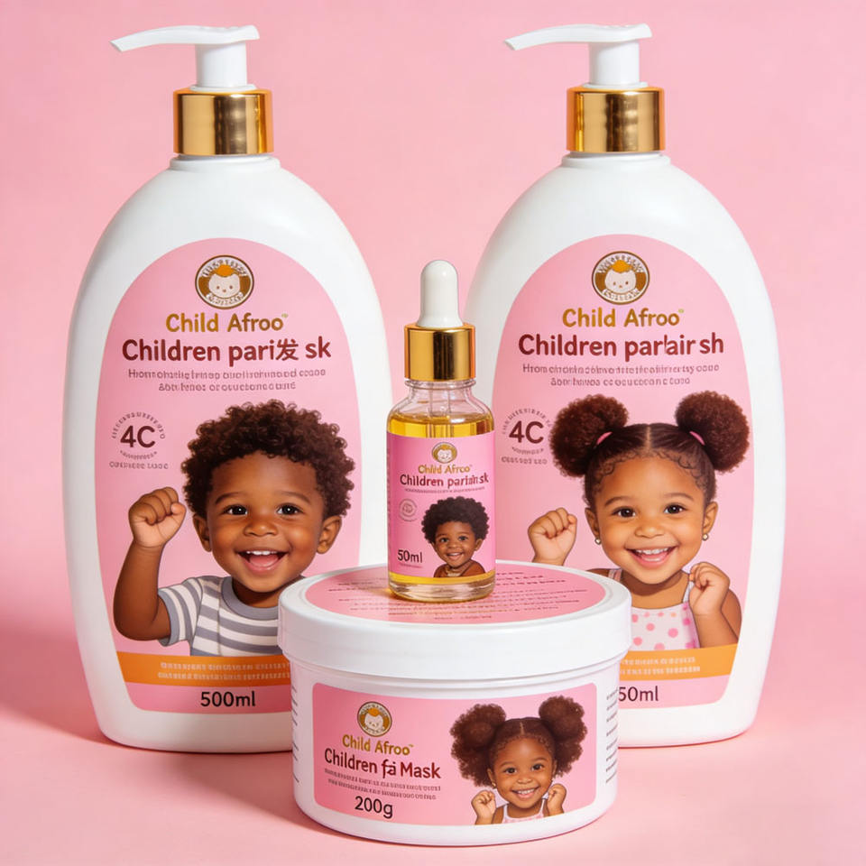ชุดผลิตภัณฑ์บำรุงผมหยิกสำหรับเด็ก น้ำมันโรสแมรี่ แชมพู ครีมนวดผม และครีมบำรุงผมแบบไม่ต้องล้างออก สำหรับเด็กผิวสี