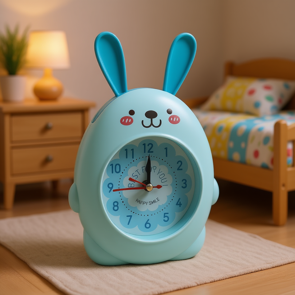 นาฬิกาปลุกดิจิตอลสำหรับเด็กแบบชาร์จไฟได้ ดีไซน์รูปกระต่ายพลาสติกสำหรับใช้ในห้องนอนเด็ก