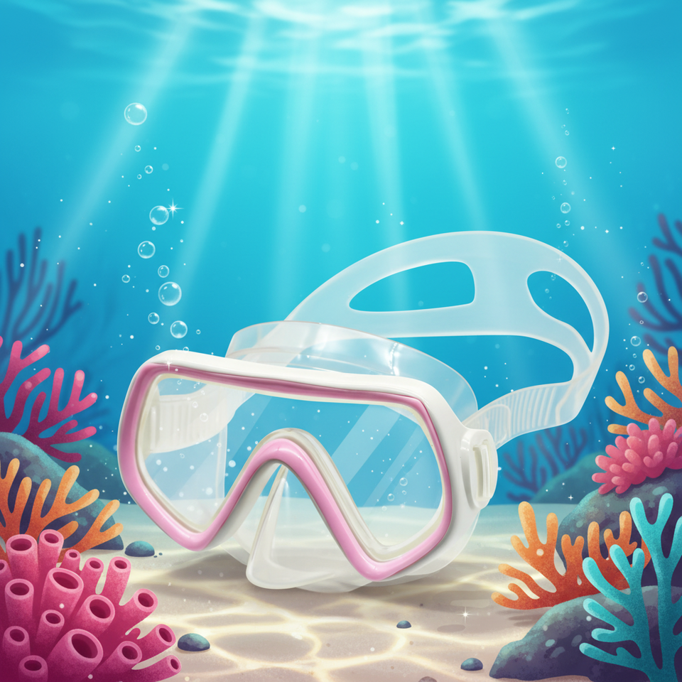หน้ากากดำน้ำสำหรับเด็ก, หน้ากากดำน้ำแบบไม่มีกรอบป้องกันฝ้า, เลนส์เดี่ยวขนาดเล็กพร้อมสายรัดซิลิโคนสำหรับการว่ายน้ำสำหรับเด็ก