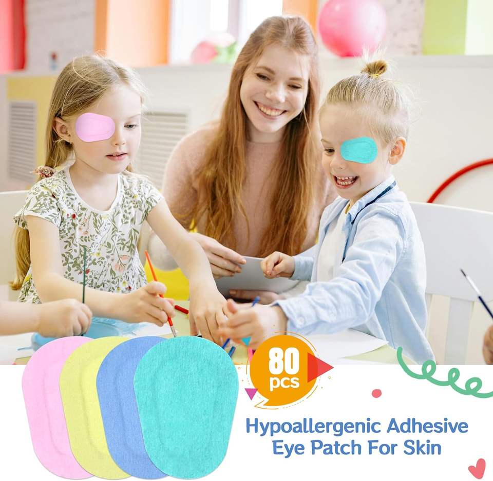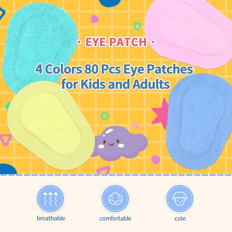 แผ่นปิดตาเด็ก 4 กล่อง/80 ชิ้น แผ่นปิดตาแบบมีกาวสีสันสดใส ระบายอากาศได้ดี แผ่นปิดตาสำหรับสายตาขี้เกียจ 4 แบบ สำหรับอาการตาขี้เกียจและตาไขว้