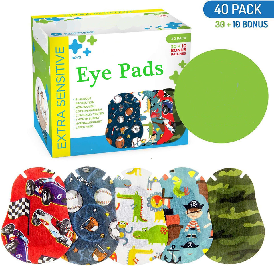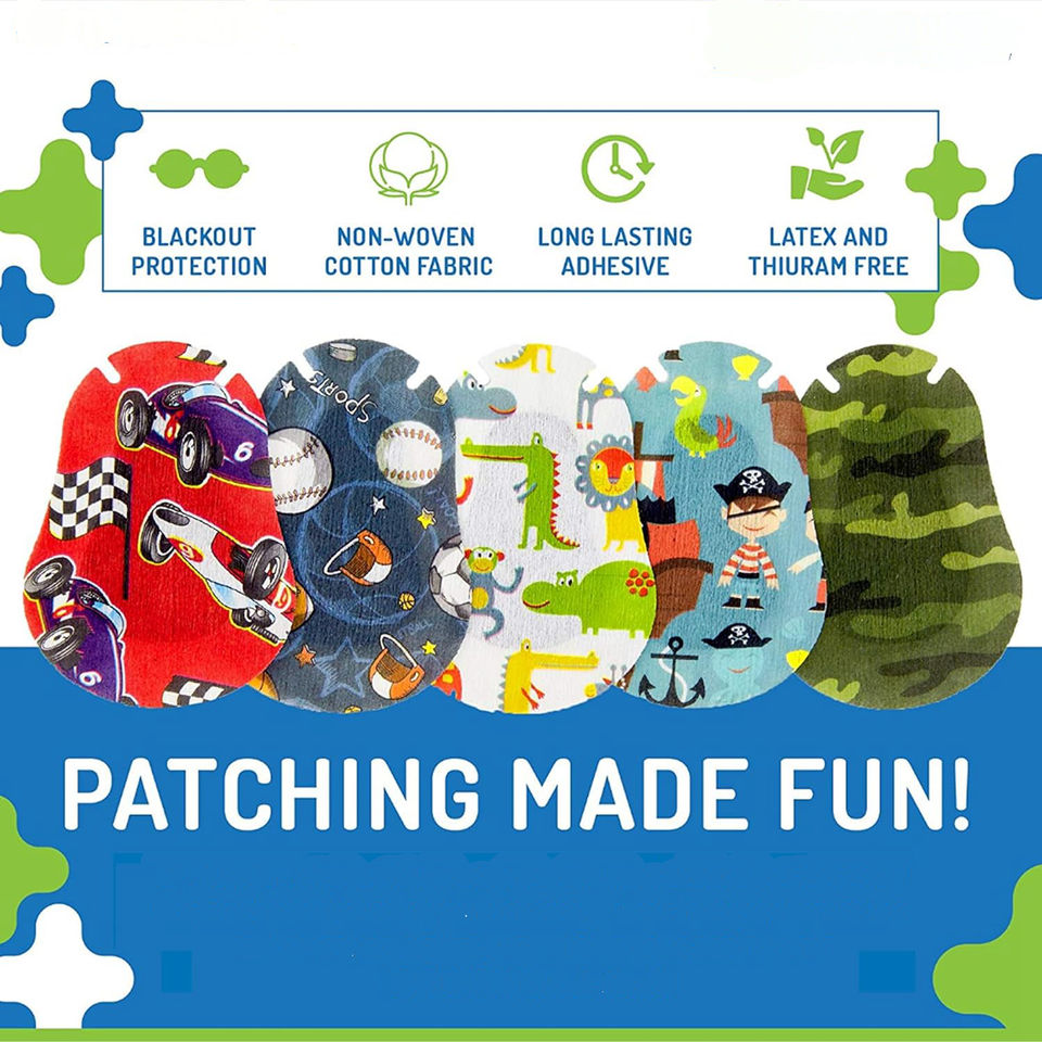 แผ่นปิดตาเด็ก - ลายสนุกๆ สำหรับเด็กผู้ชาย - 30 ชิ้น + แถมฟรี 10 ชิ้น ผ้าพันแผลกาวติดผ้าฝ้าย ปราศจากน้ำยาง ป้องกันการแพ้ สำหรับอาการตาขี้เกียจและตาไขว้