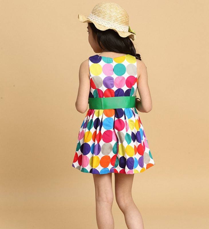 ชุดเดรสลำลองสำหรับเด็กผู้หญิง ลายจุดหลากสี พร้อมเข็มขัด ใส่สบายสำหรับฤดูร้อน