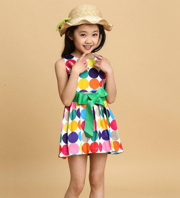 ชื่อ:ชุดเดรสลำลองสำหรับเด็กผู้หญิง ลายจุดหลากสี พร้อมเข็มขัด ใส่สบายสำหรับฤดูร้อน