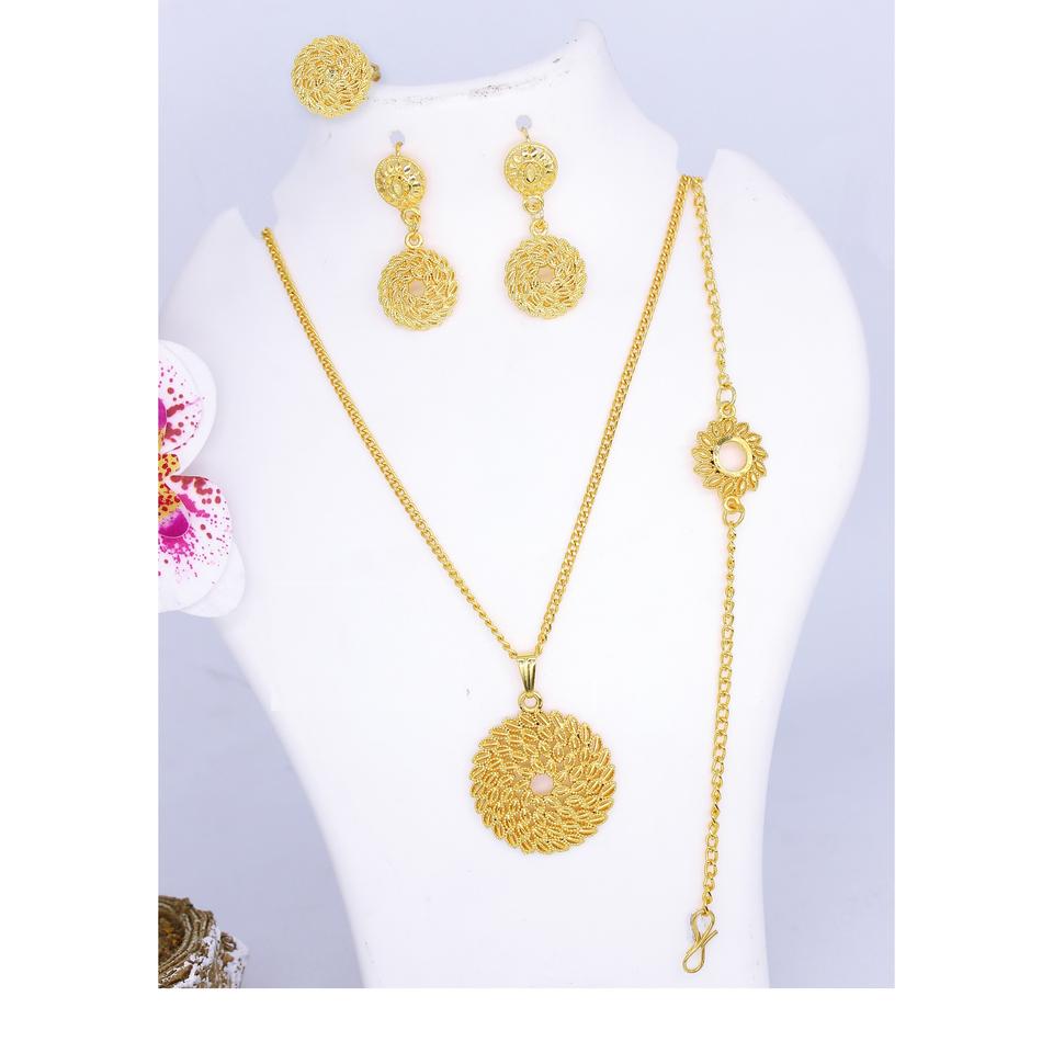 เครื่องประดับเด็กผู้หญิงเครื่องประดับอินเดียชุดเครื่องประดับเจ้าสาวดูไบชุบทองขายส่งต่างหูทองแดงดูไบ