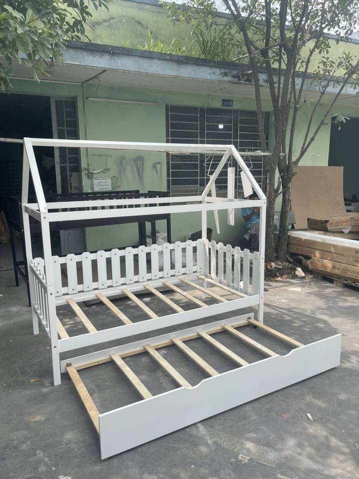 โครงเตียงเด็กพร้อมเตียงเสริม - เตียงไม้แบบมีหลังคาสำหรับห้องเด็กชายหรือเด็กหญิง