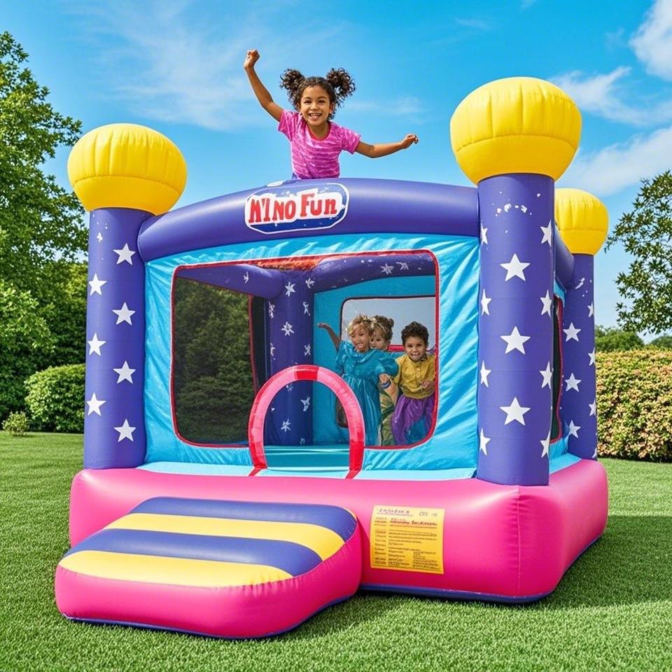 ปราสาทเด้งดึ๋งเป่าลมสำหรับเด็กปาร์ตี้เป่าลมพร้อมพื้นที่แทรมโพลีนแบบสไลด์ดีไซน์แบบกำหนดเองสำหรับใช้ในเชิงพาณิชย์กลางแจ้ง