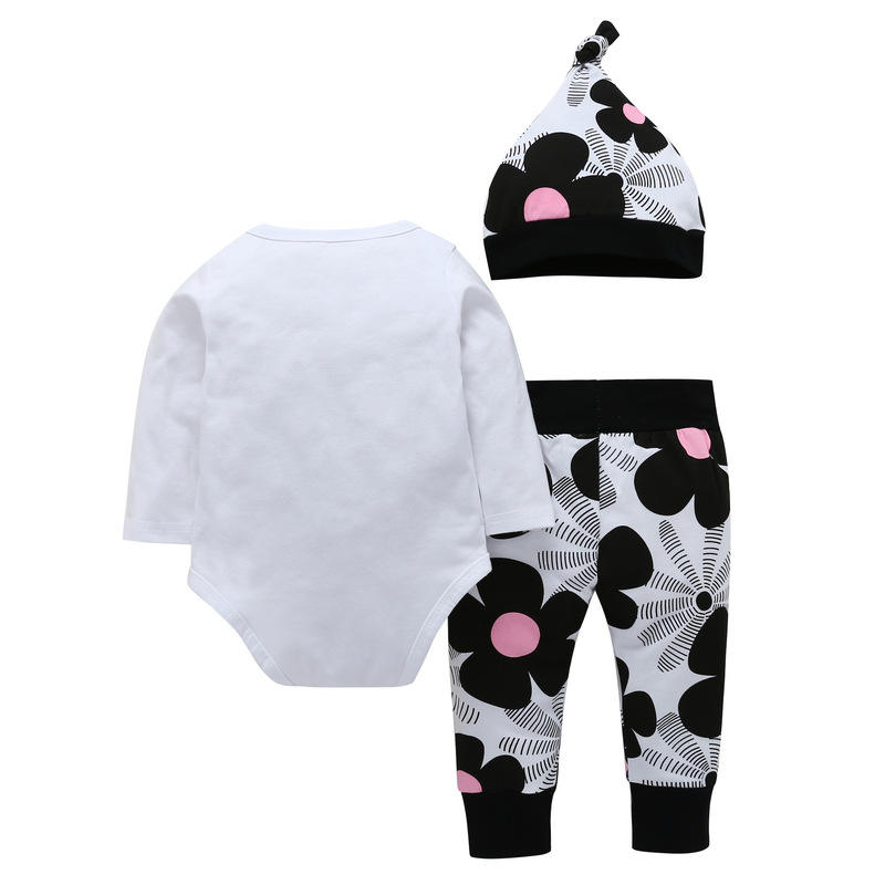 คำอธิบาย:ชุดเสื้อผ้าเด็กผู้หญิง ชุดรอมเปอร์ผ้าฝ้ายลายดอกไม้ พร้อมเลกกิ้งสำหรับเด็กทารก