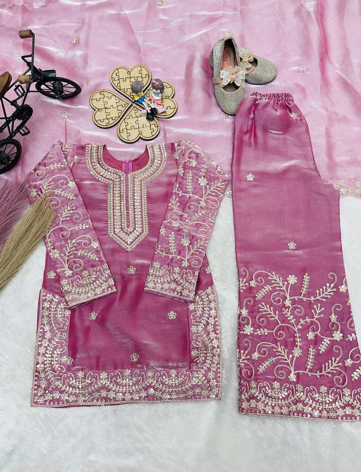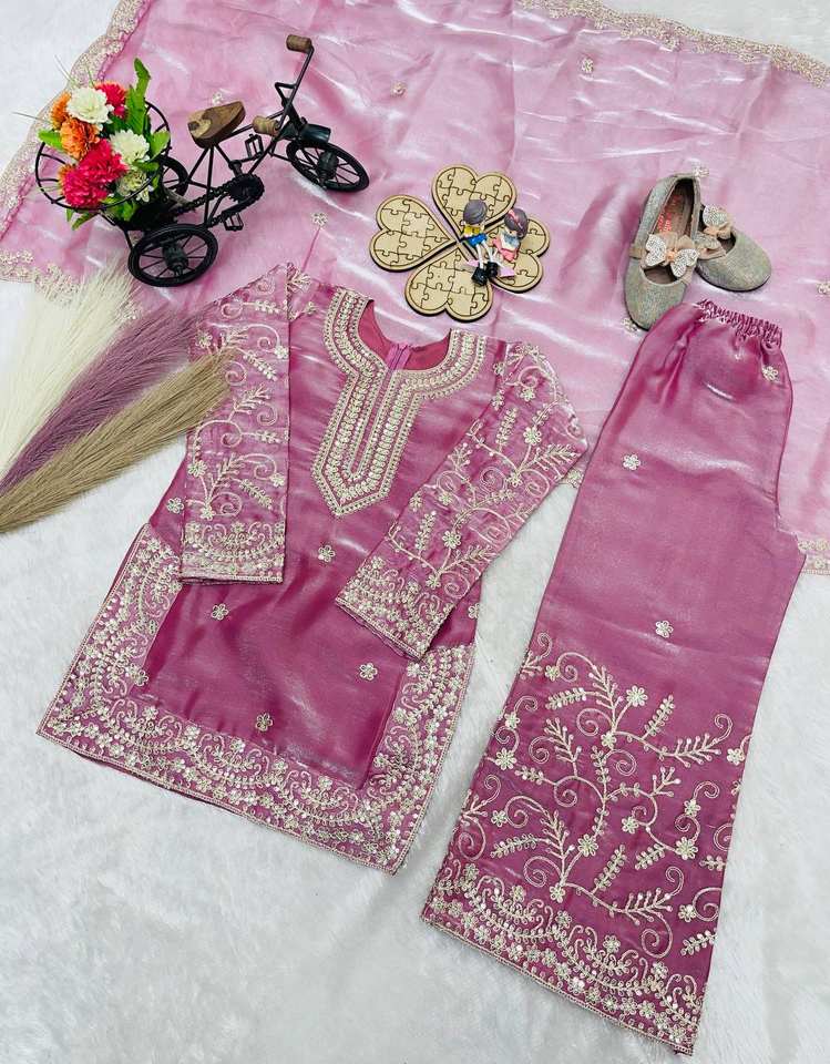 ชุดเดรสเด็กผู้หญิงผ้าไหมลาเวนเดอร์ปักลาย ซาราร่าสูท ผ้าคลุมไหล่แบบสแกลลอป ดีไซน์เนอร์ ชุดพื้นเมืองสไตล์บอลลีวูดสำหรับงานปาร์ตี้