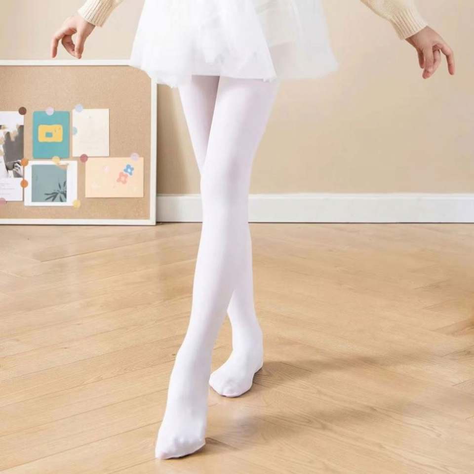 ถุงน่องเด็กสำหรับเต้นบัลเลต์ ถุงน่องกำมะหยี่สีขาวสำหรับเด็กผู้หญิง ถุงน่องเด็กผู้หญิงสำหรับเต้นบัลเลต์แบบมืออาชีพ