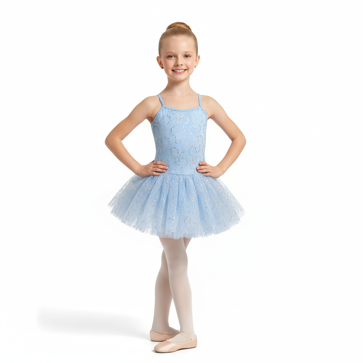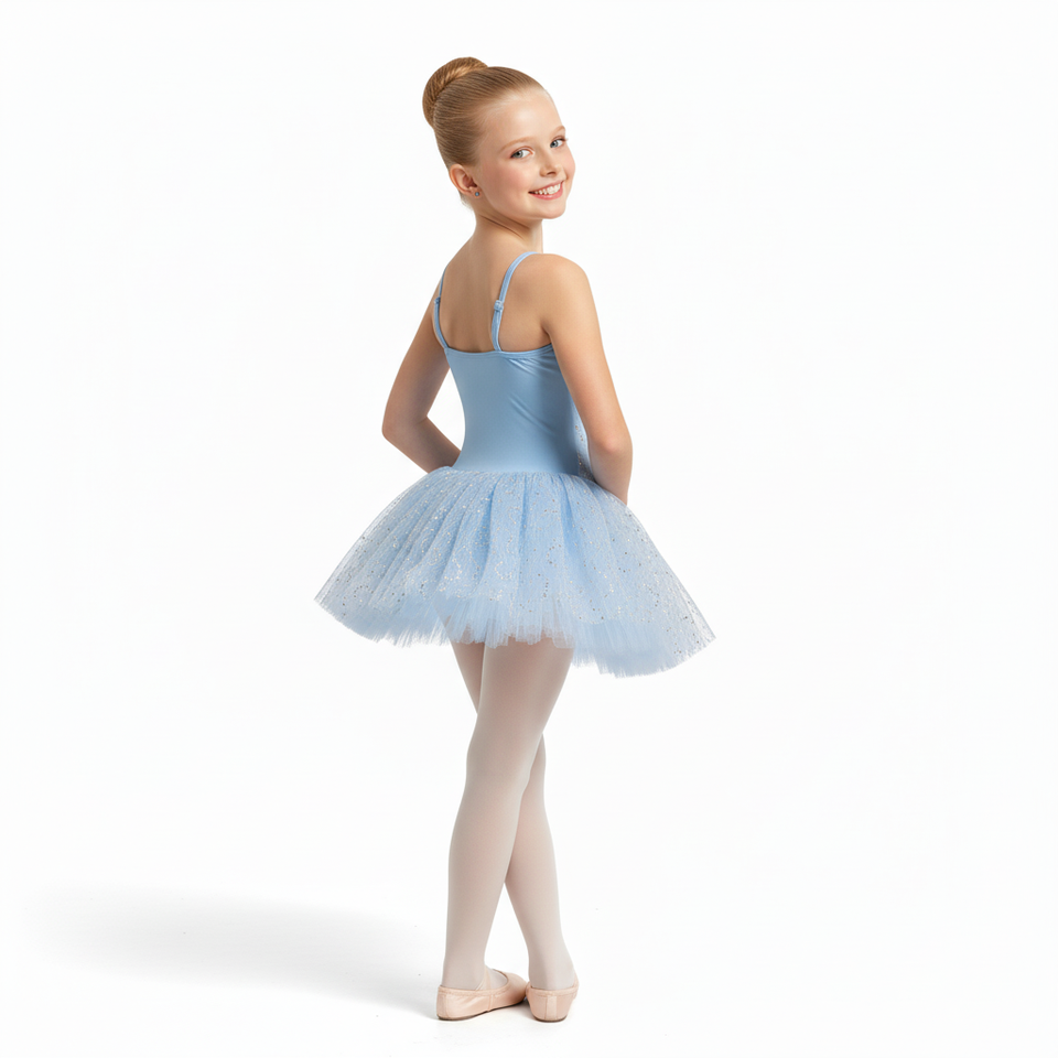 ชุดบัลเลต์เด็กผู้หญิงสีฟ้าอ่อนประดับกลิตเตอร์ ชุดเต้นรำลายเลื่อมสำหรับเรียนบัลเลต์และการแสดง