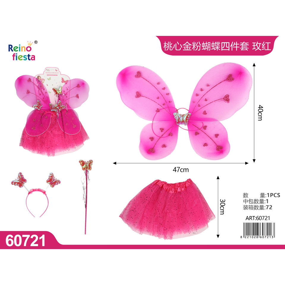 Kids Pink Glitter Butterfly Costume Set with Wings and Skirt Including Props