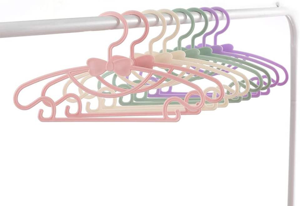 ไม้แขวนเสื้อเด็กอเนกประสงค์ พลาสติก สำหรับเสื้อผ้าเด็กเล็ก ดีไซน์โบว์ตรงกลาง พกพาสะดวก ทำจากพลาสติก PP