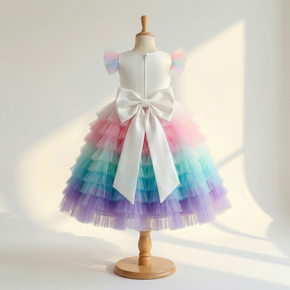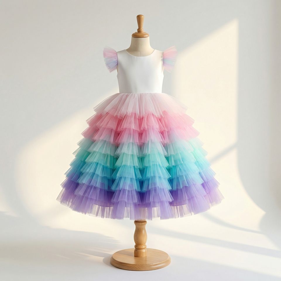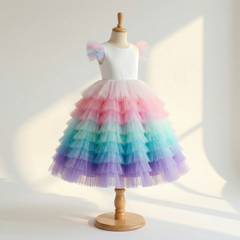 ชุดเดรสเด็กผู้หญิงลายยูนิคอร์นสีรุ้ง ผ้าทูลล์ แขนกุด สำหรับงานปาร์ตี้เจ้าหญิง งานวันเกิด งานแต่งงาน หรือเป็นชุดเพื่อนเจ้าสาว