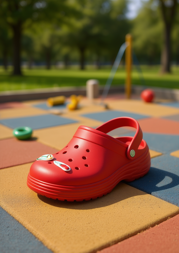 รองเท้าแตะเด็กสีแดง ไซส์ 19 พร้อมเข็มกลัดลายการ์ตูน สวมแบบสลิปออน หัวมน รองเท้าลำลองสำหรับฤดูร้อน วัสดุพลาสติก พื้นยาง EVA
