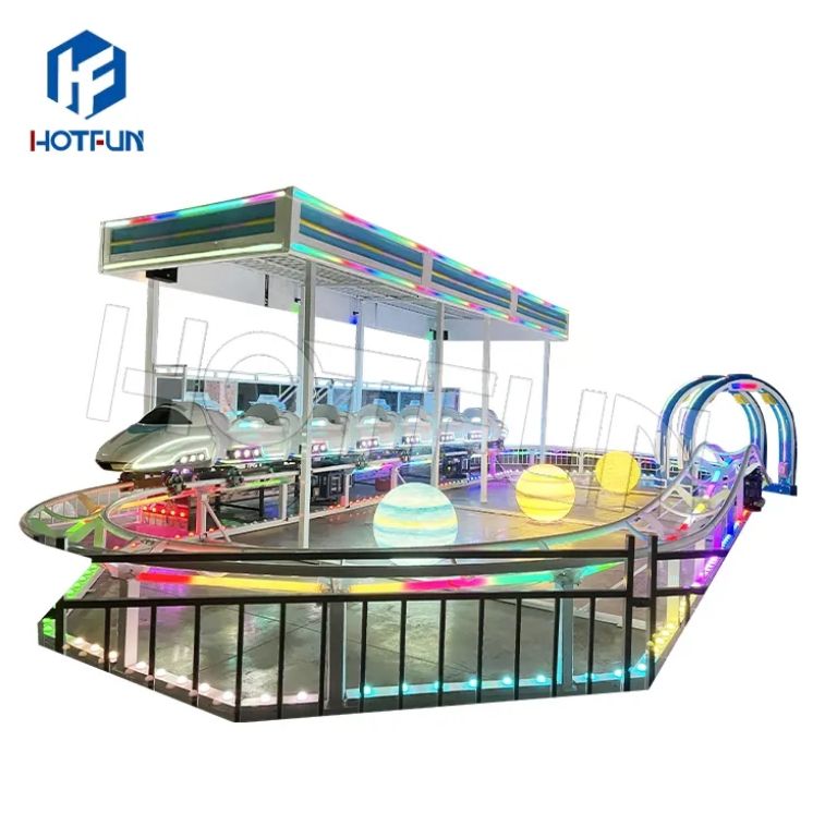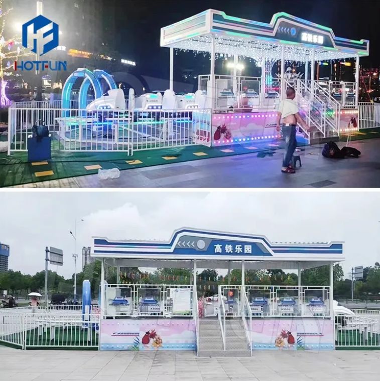 รถไฟเหาะสำหรับเด็กสถานที่ท่องเที่ยวในโรงงานที่ละเอียดอ่อนการขับขี่ในสวนสนุกที่สะดุดตารถไฟความเร็วสูงสวรรค์