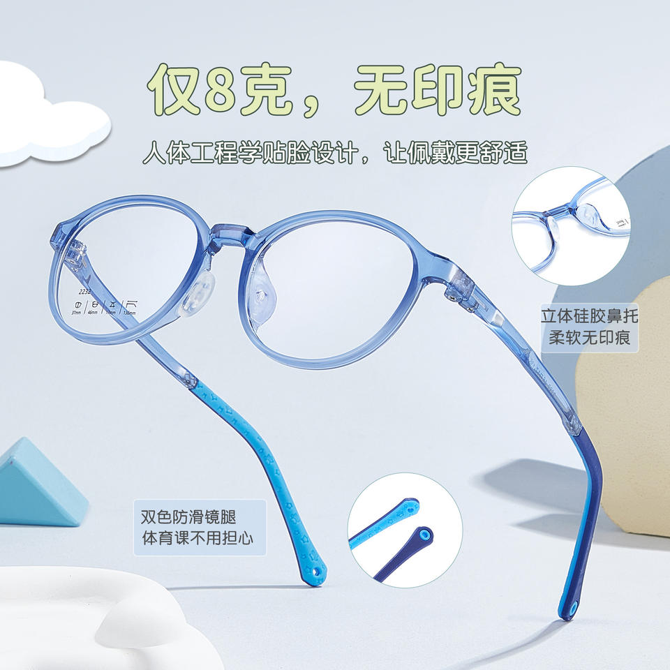 กรอบแว่นตาเด็กทรงกลม TR รุ่น 2232 46-17-136 เลนส์เรซิ่นแบบเต็มกรอบสวมใส่สบาย ผลิตที่ตานหยาง