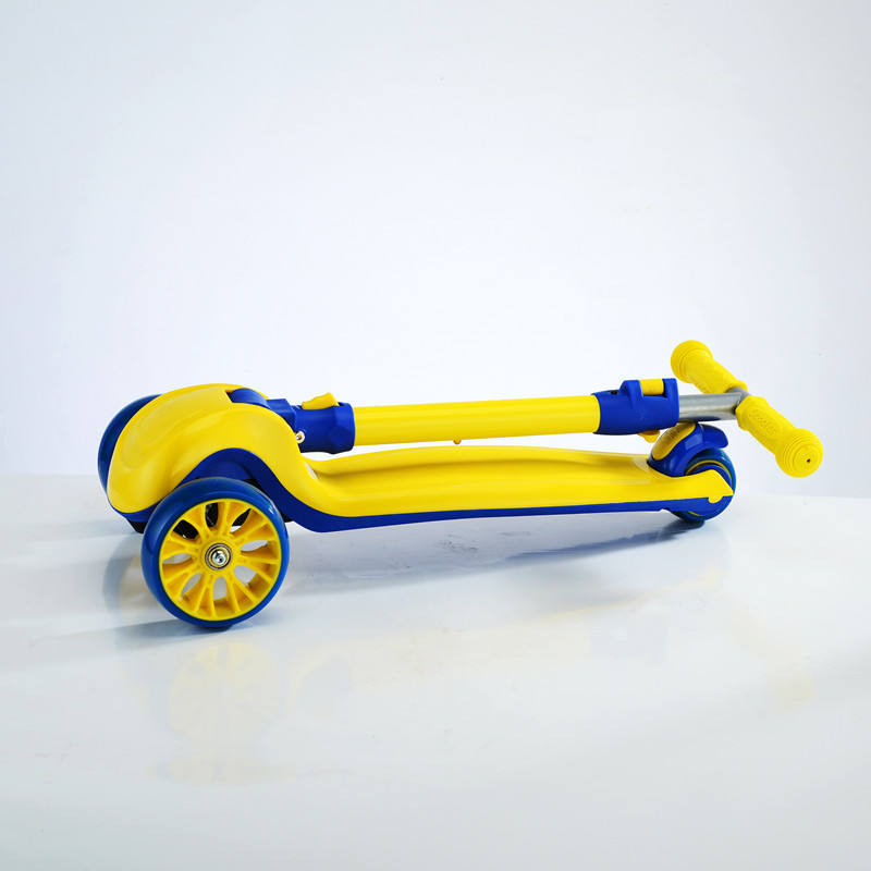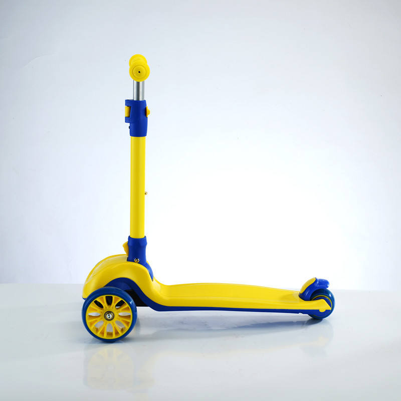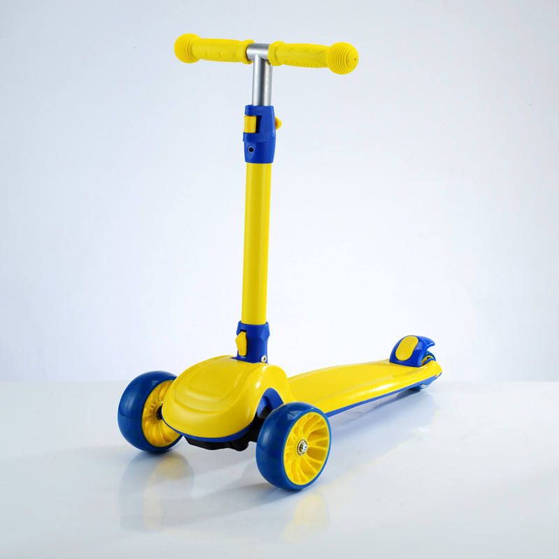 สกู๊ตเตอร์เด็ก สีเหลืองน้ำเงิน พับได้ ปรับความสูงได้ 1-12 ปี สกู๊ตเตอร์แบบมีแป้นเหยียบ สำหรับเด็กและวัยรุ่น