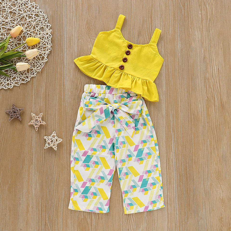 ชุดเด็กขายส่ง เสื้อผ้าเด็กผู้หญิง ชุดกางเกงผ้าฝ้ายสไตล์โบฮีเมียน พร้อมสายคล้องไหล่ สำหรับการช้อปปิ้งออนไลน์