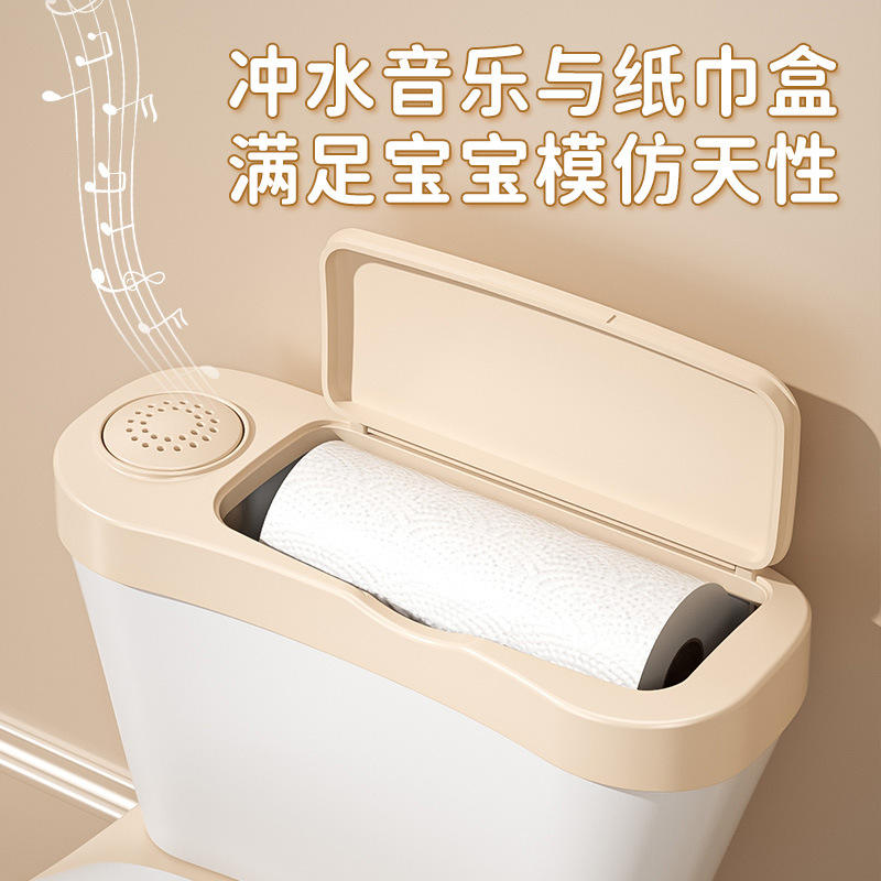 ที่นั่งชักโครกจำลองสำหรับเด็กพร้อมเสียงกดชักโครก กระโถนฝึกขับถ่ายสำหรับเด็กผู้ชายและเด็กทารก วัสดุ PP สีเทา สีกากี