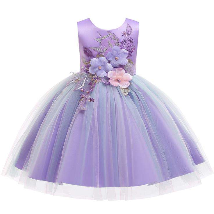 ชุดเดรสลูกไม้แขนกุดสำหรับเด็กผู้หญิง ชุดเจ้าหญิงดอกไม้สำหรับงานแต่งงาน ชุดกระโปรงบัลเลต์