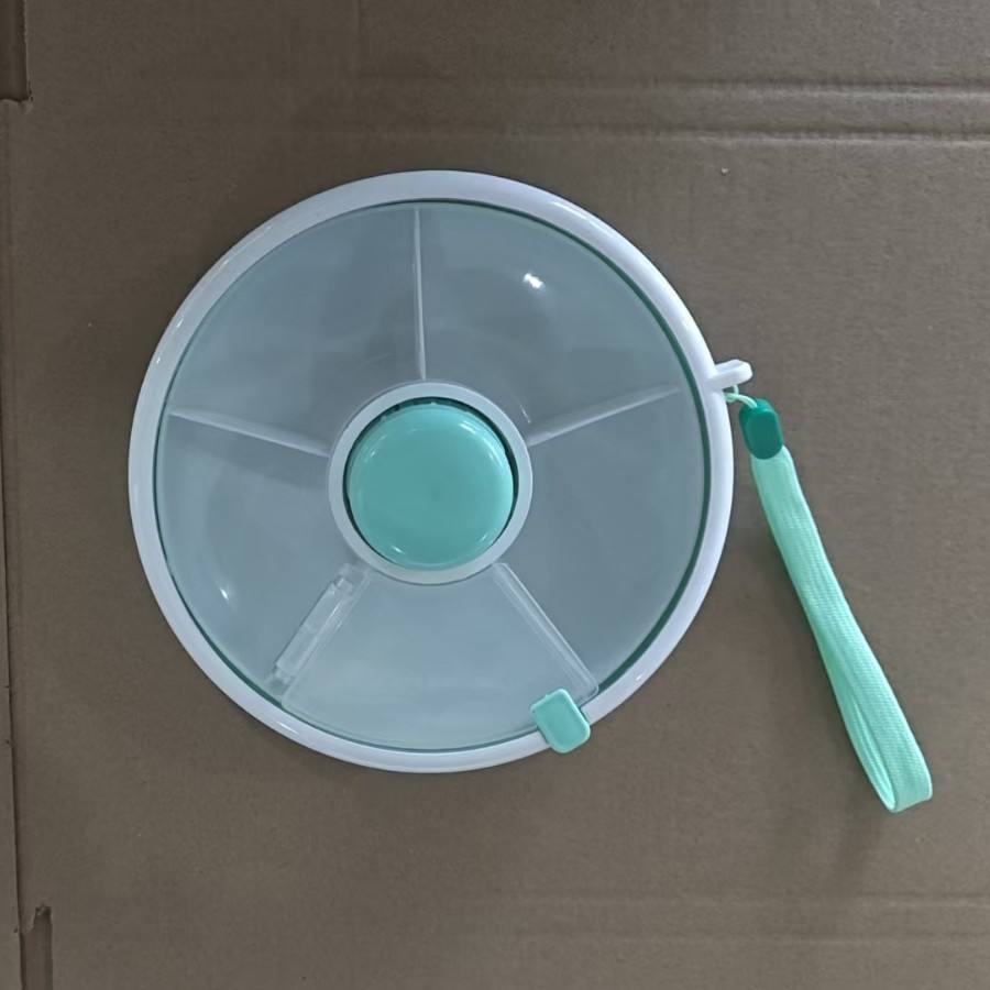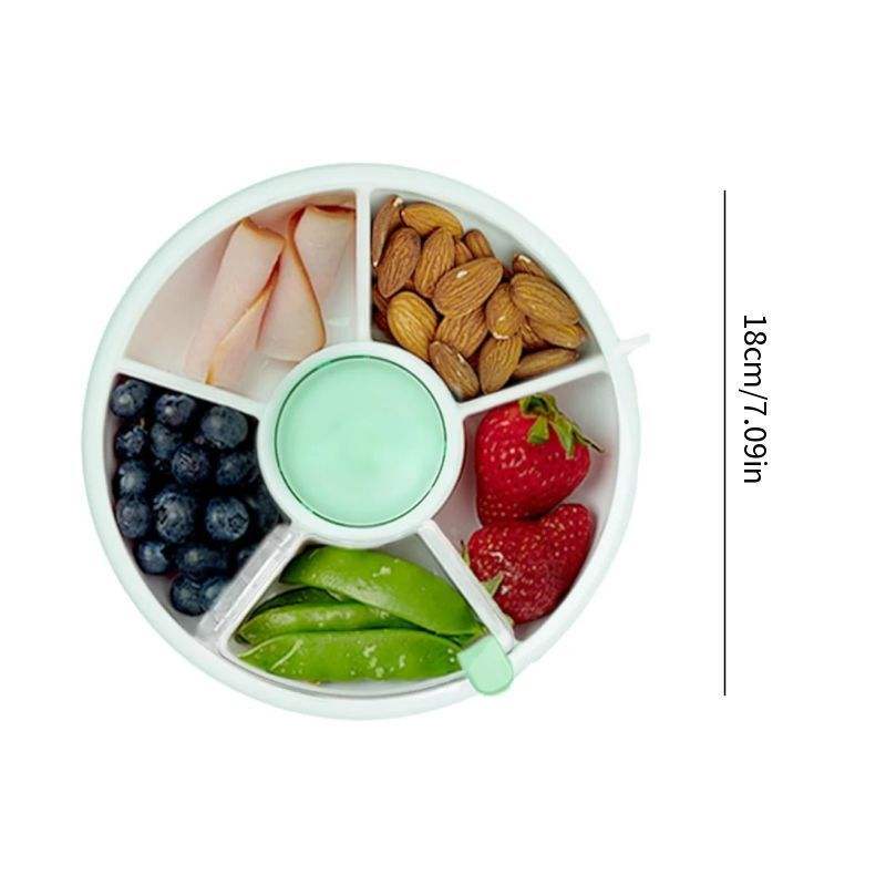 กล่องเก็บขนมสำหรับเด็ก ถาดผลไม้ทรงกลมแบบหมุนได้พร้อมฝาปิด ภาชนะบรรจุอาหารแบบพกพาสำหรับใช้ในบ้าน