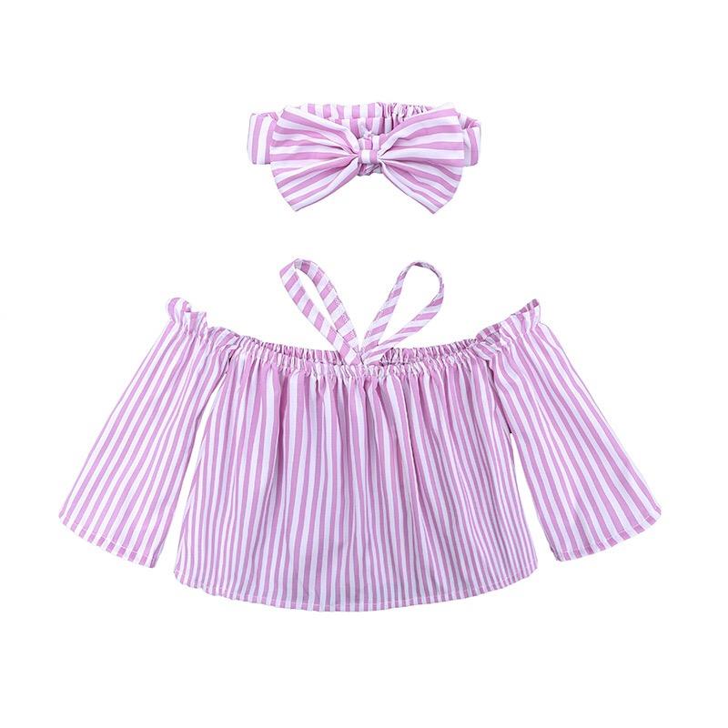 เสื้อเด็กแขนกุดลายทางแบบคล้องคอ+กางเกงยีนส์ขาดสีชมพู+ที่คาดผม ชุดเสื้อผ้า 3 ชิ้น ชุดฤดูร้อนสำหรับเด็ก ชุดเด็กผู้หญิง