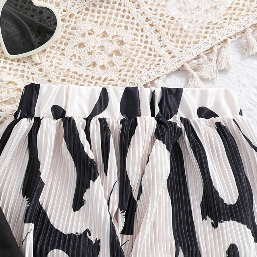 ชุดสูทสำหรับเด็กผู้หญิงเสื้อแขนกุดสีดำและสีขาวชุดสองชิ้นมีสไตล์วันเกิดปาร์ตี้ลำลองขนาดใหญ่พิเศษ