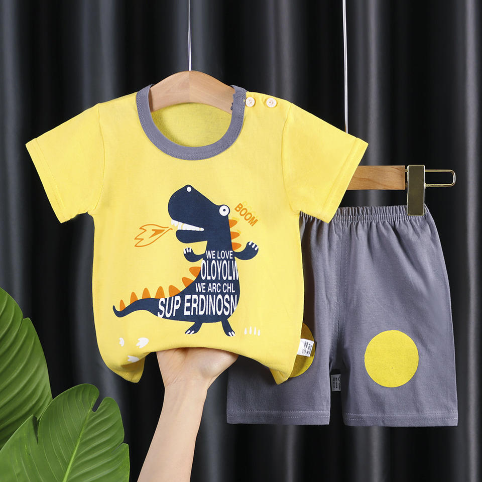 ชุดเสื้อยืดแขนสั้นกางเกงขาสั้นสำหรับเด็กผู้ชายและเด็กผู้หญิง ชุดเสื้อผ้าเด็กฤดูร้อน ชุดเสื้อผ้าเด็กผู้ชาย