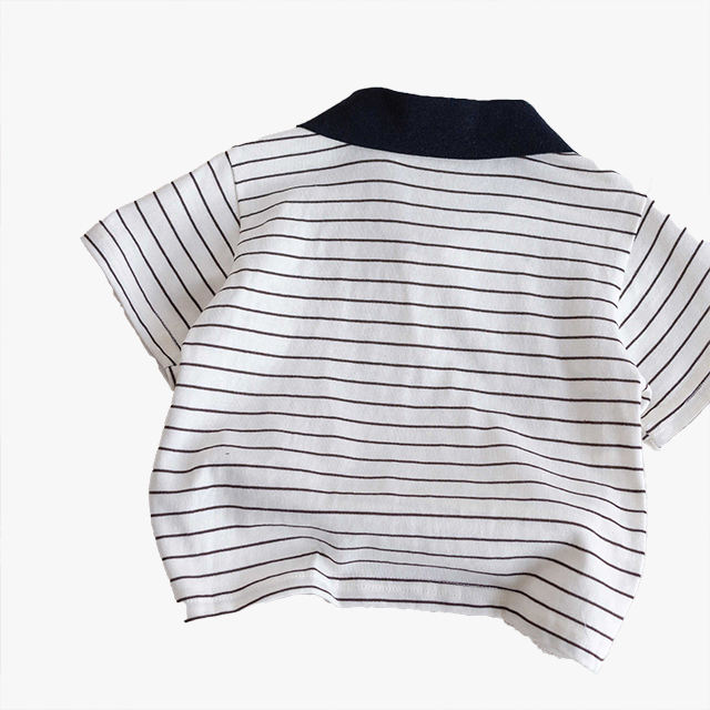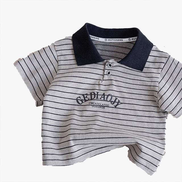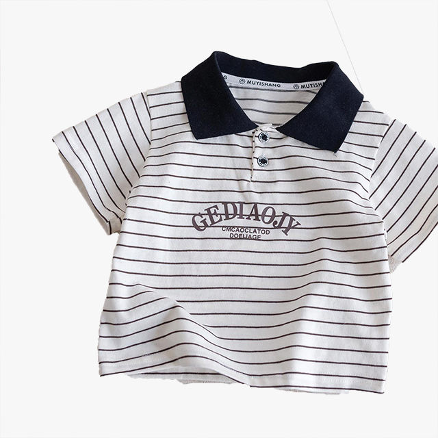 เสื้อยืดเด็กผู้ชายลายทาง แขนสั้น คอปก สำหรับฤดูร้อน เสื้อโปโลเด็กเล็ก เสื้อซับในเด็กวัยหัดเดิน