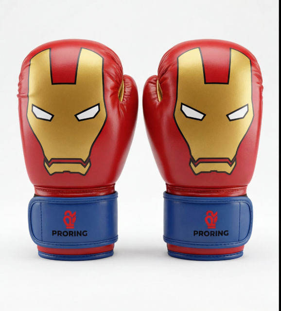 ถุงมือชกมวยซูเปอร์ฮีโร่สำหรับเด็ก สีแดงทอง การ์ตูน ถุงมือฝึกซ้อมสำหรับเยาวชน อุปกรณ์ฝึกซ้อมสำหรับเด็กผู้ชาย